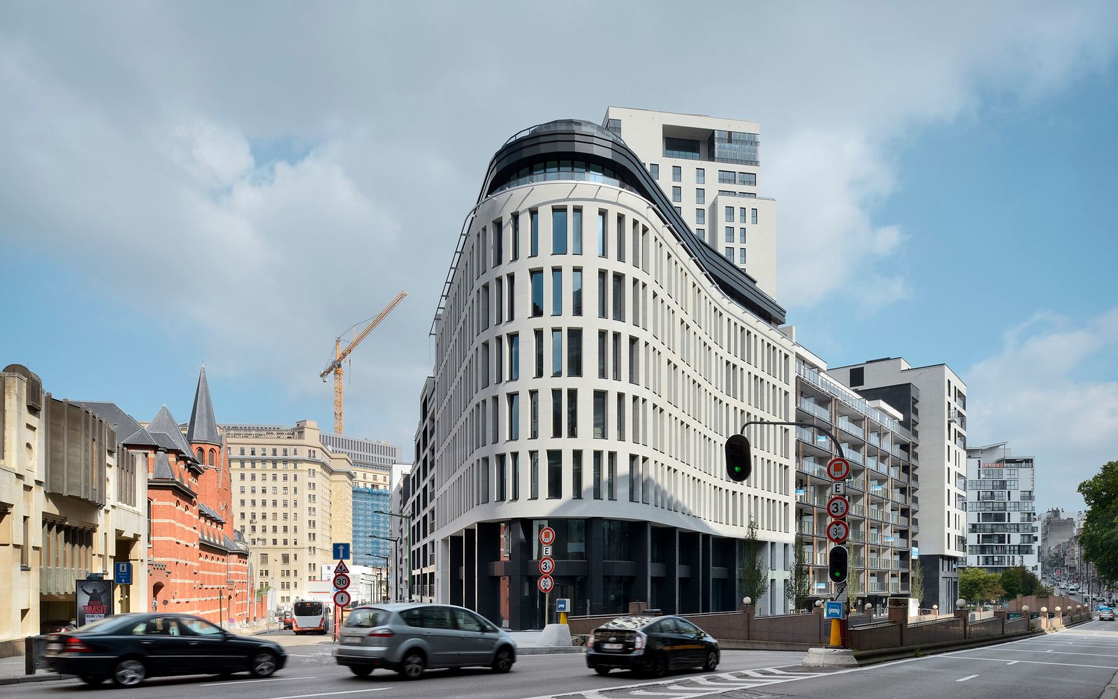 While the exterior blends into the European urban context, subtle details evoke Japan’s cultural identity.
