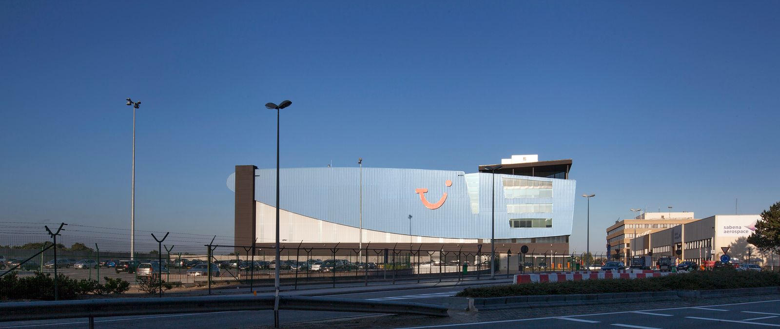 The new headquarters of TUI Belgium is noticeably different from conventional structures at and around airports. Fresh, vibrant design reflects the spirit and image of the young dynamic company while making a remarkable form of advertisements in an unconventional location. Particularly the wing-shaped roof structure with its color-shifting coating catches the eye, the building also meets the strictest criteria of sustainability.